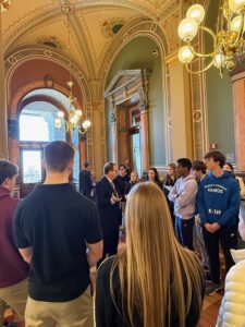 ICC Executive Director Tom Chapman talks to the pro-life student group from Dowling Catholic High School.